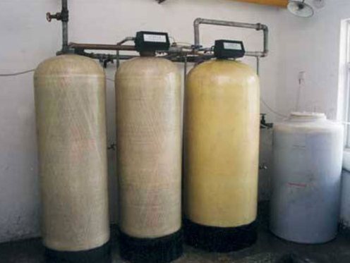 水的硬度主要由鈣、鎂形成及表示,一般采用陽離子交換樹脂(軟水器)將原水通過鈉型陽離子交換樹脂,使水中的硬度成分Ca2+、Mg2+與樹脂中的Na+相交換,從而吸附水中的Ca2+、Mg2+,使水得到軟化。隨著樹脂內Ca2+、Mg2+的增加,樹脂去除Ca2+、Mg2+的效能逐漸降低,當樹脂吸收一定量的鈣鎂離子之后,就必須進行再生,再生過程就是用鹽箱中的食鹽水沖洗樹脂層,把樹脂上的硬度離子在置換出來,隨再生廢液排出罐外,樹脂就又恢復了軟化交換功能。